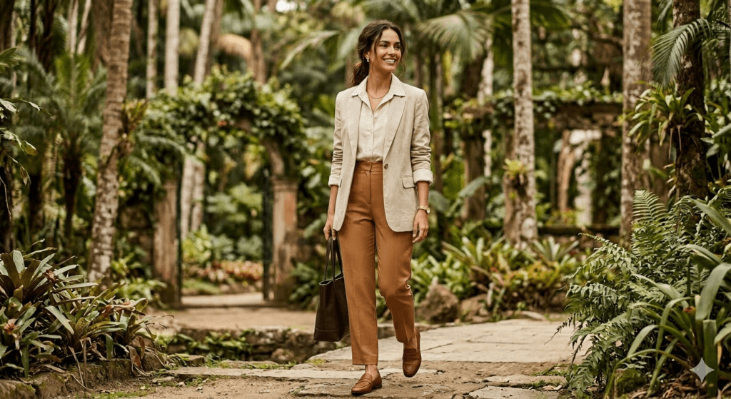 Essas escolhas criam looks que funcionam tanto para um almoço, um passeio à beira-mar ou um encontro no final da tarde.